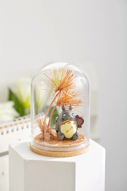 新型作品《蒲公英软木画手办盒》,特别设计摆放了年轻人喜欢的卡通形象。工美心音艺术/供图