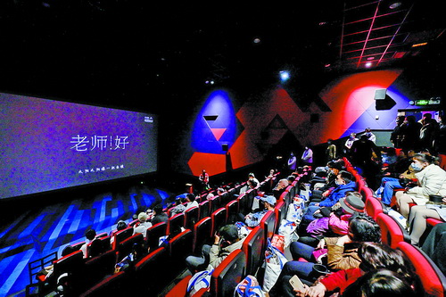 电影开场前,视障人士在陪护人员和志愿者的陪同下,早早来到现场,在工作人员的协助下,有序入座。昨日上午9时许,无障碍电影《老师·好》正式放映。