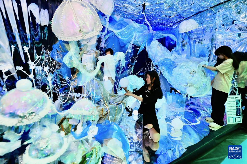 5月19日,福建商贸学校学生在进行“梦幻海底世界”主题设计制作比赛。新华社记者 姜克红 摄