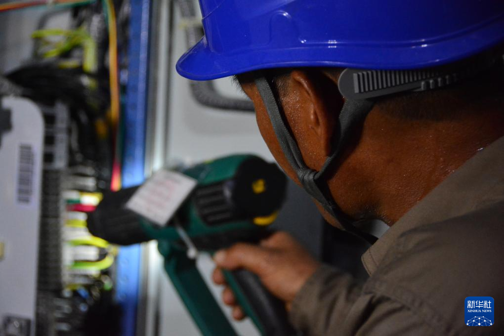 9月6日晚,检修人员在福州台江区佳源居小区的配电房里工作。新华社记者 李昊泽 摄