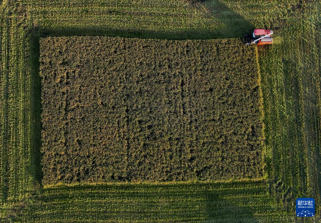 农机手驾驶收割机在稻田里收割水稻(11月17日摄,无人机照片)。新华社记者 魏培全 摄