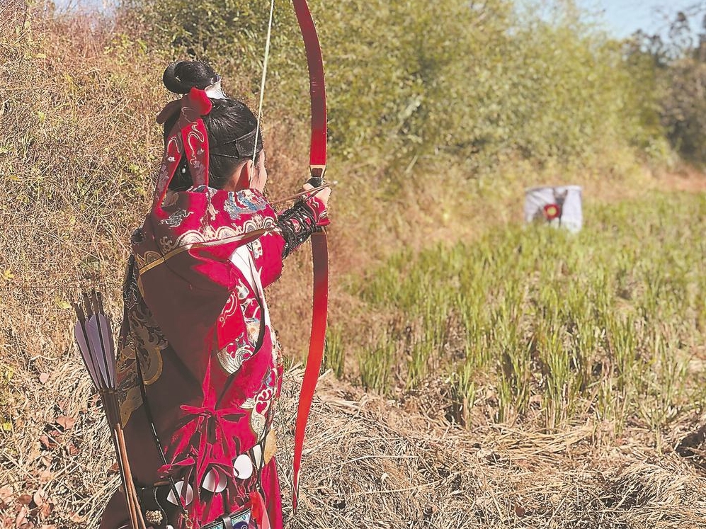 在比赛现场,参赛选手穿梭在山林、乡村间,以跪射、返身射等各式射姿进行射击,整套射箭动作一气呵成,勾弦撒放的瞬间,感受射箭运动带来的独特魅力。