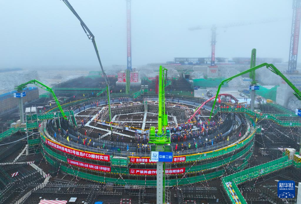 2月22日,中核集团漳州核电二期工程“华龙一号”3号机组浇灌核岛第一罐混凝土浇筑现场(无人机照片)。新华社发(中核集团中核二四公司供图)