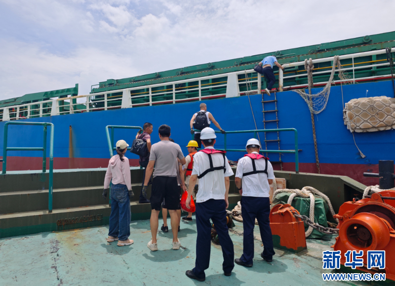 护送船员返回船上。新华网发(福建海事局供图)