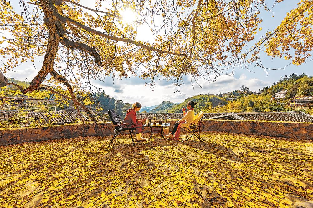 永泰县盖洋乡珠峰村有53棵古银杏树,是福州迄今规模最大、保存最完好的古银杏树群。不久前,珠峰村银杏古树群入选第四批福建最美古树群。近日,该村银杏林变黄,迎来一年中的最佳观赏期,许多摄影师和游客慕名而来。