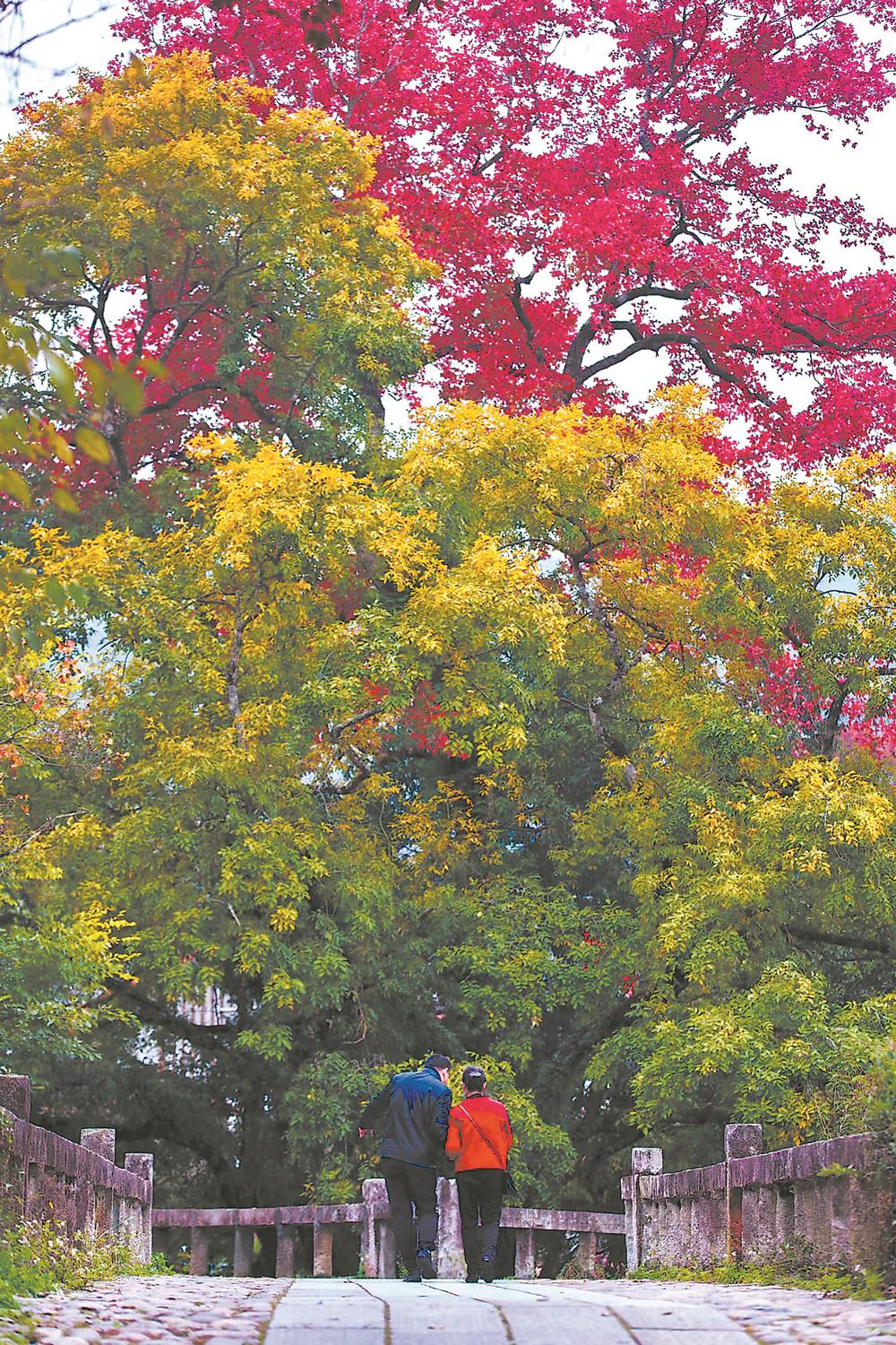 2024年12月21日,福州市晋安区九峰村,枫叶红橙黄绿,层层晕染。陈永诚 摄