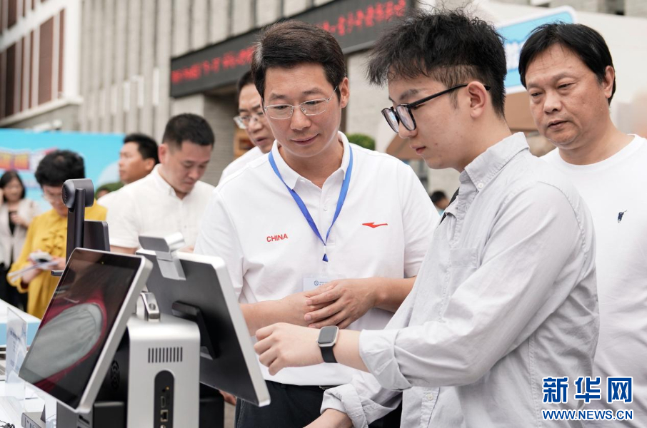 心理健康展示活动设置了暖心集市、幸福社区、温暖集体三个主题。图为来宾参观了解AI智能情绪检测系统。新华网 蒋巧玲 摄