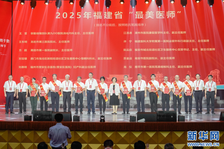 新华网福州8月18日电(蒋巧玲)17日,福建省举行2025年中国医师节活动大会。会上,32项医学科技成果获评“2024年福建医学科技奖”,20人被授予“最美医师”。