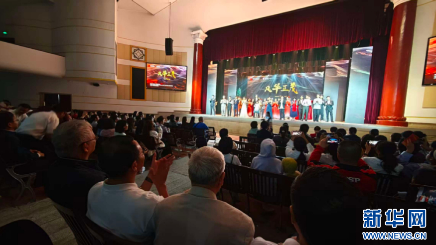 11月7日晚,大型原创音乐史诗剧《风华正茂》在厦门大学展演。这是演出现场。新华网 刘默涵 摄