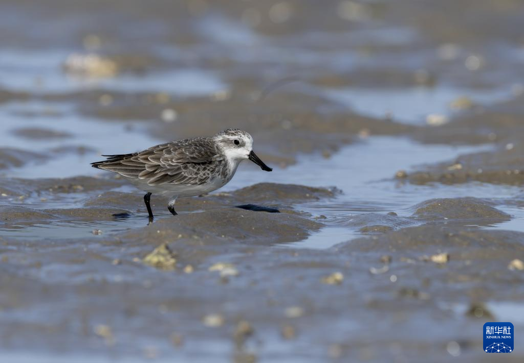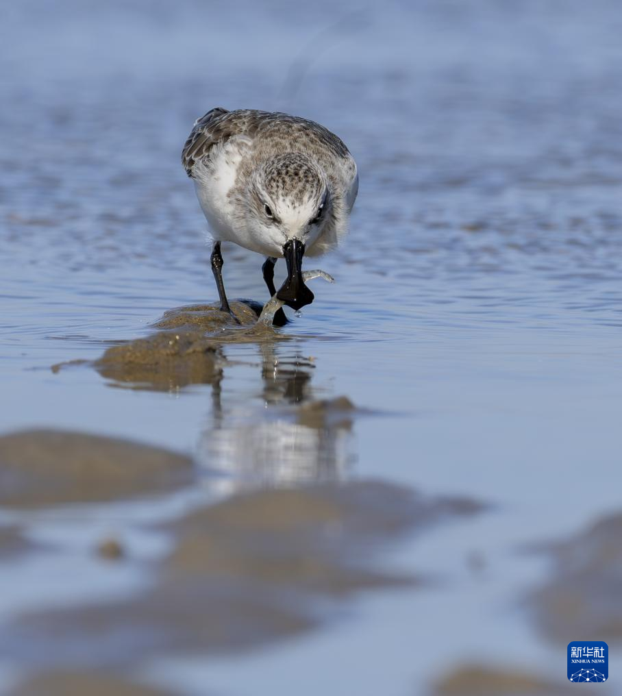 11月9日,一只勺嘴鹬在泉州围头湾滩涂上觅食。新华社记者 魏培全 摄