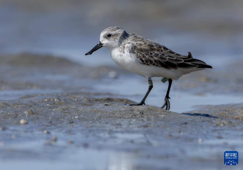 这是连续三年来泉州围头湾越冬的戴“H0”脚环勺嘴鹬(11月9日摄)。新华社记者 魏培全 摄