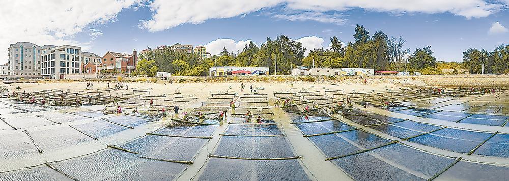 眼下,正值紫菜收割的黄金时节,位于莆田市湄洲山亭镇蒋山村的2000多亩紫菜迎来采收季。连日来,养殖户抢抓晴好天气,收晒今年的头水紫菜。