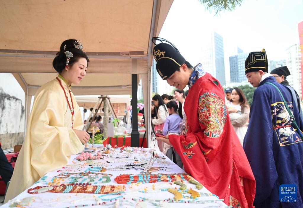 11月15日,汉服爱好者在第十二届中华礼乐大会活动现场拍照。新华社记者 林善传 摄