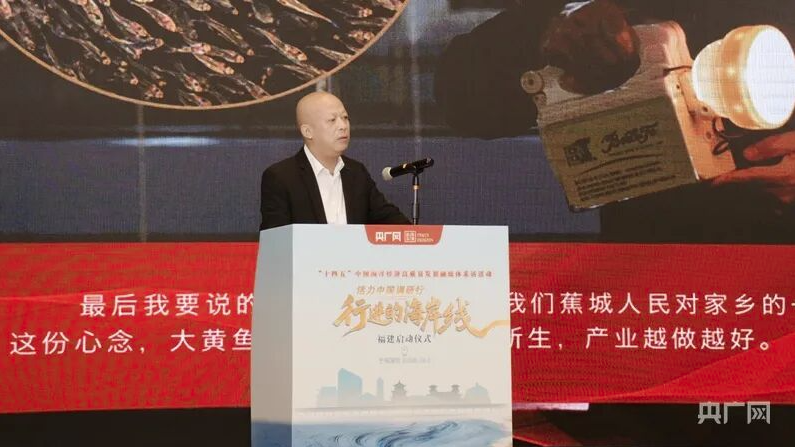 何必良代表蕉城区委、区政府致辞。他表示,蕉城拥有得天独厚的海洋资源禀赋。蜿蜒曲折的海岸线勾勒出壮美的山海画卷,海上天湖三都澳、百里画廊霍童溪享誉四方,锂电新能源、新能源汽车、铜材料三大世界级产业地标巍峨耸立,“中国大黄鱼之乡”“中国茶业百强县”等金字招牌闪闪发光。“借此机会,热忱邀请大家常来‘好山好水好风光、有诗有景有远方’的大美蕉城走一走、看一看,感受蕉城的人文魅力、领略蕉城的山海美景、品味蕉城的特色美食。”何必良说。