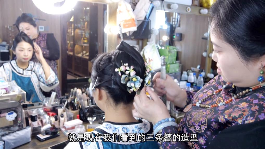 走进位于福州南公园的锦华阁,汉服妆造师黄秋辉正在为模特描眉画鬓、盘发戴簪。黄秋辉和团队花了大量时间翻阅资料、收集民间散落的古董三条簪、不断试验复刻三条簪妆束。