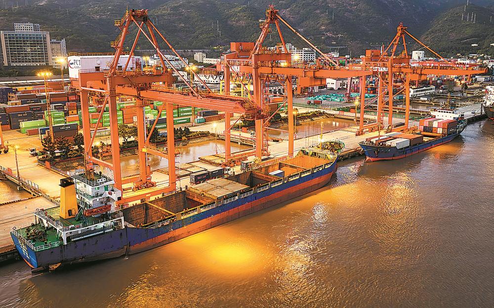 近日,福州青州集装箱码头灯火通明,货轮在泊位上有序装卸作业。据福州海关统计,今年前10个月,我省对外贸易进出口总值1.56万亿元。海关总署12月8日发布的数据显示,11月,我国货物贸易进出口总值3.9万亿元,同比增长4.1%,从2月起连续10个月保持增长。(王旺旺 摄)