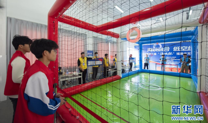 遥控杆为足,无人机化球,福建上演无人机“攻防战”。第三届“海峡杯”福建省无人机足球大赛25日在福州落幕,赛事吸引了全省近百名中小学及高校青少年同台竞技。