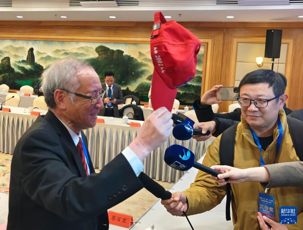 1月2日,首次“小三通”直航亲历者、金门红十字会荣誉会长王水彰在“小三通”客运航线通航25周年主题座谈交流活动现场接受采访(手机照片)。新华社记者 许雪毅 摄
