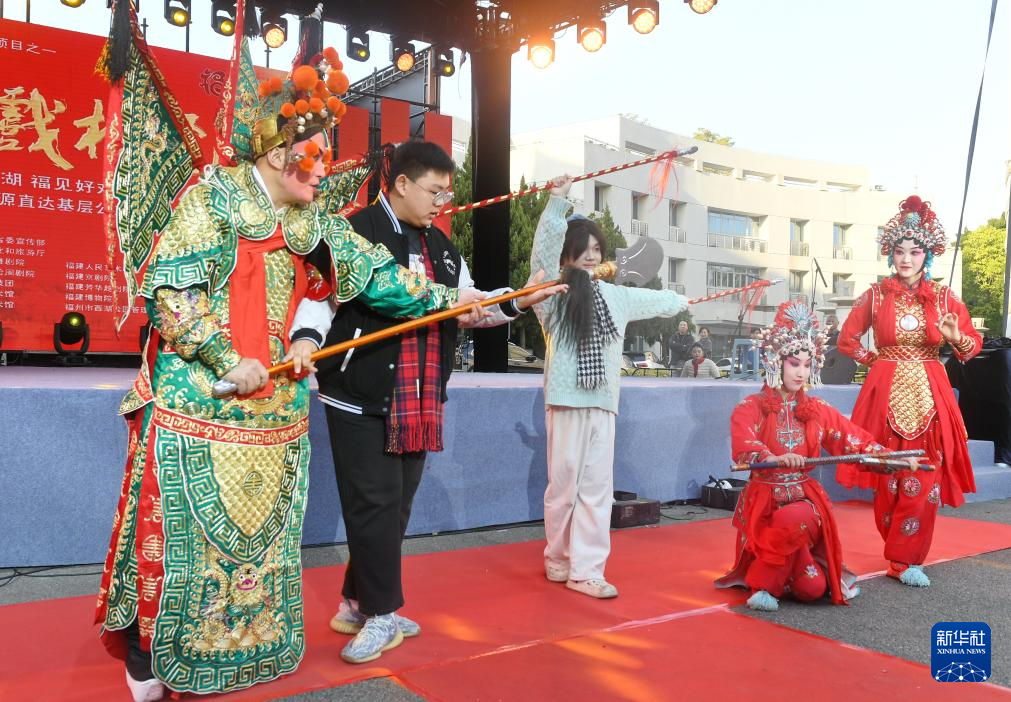 1月10日,在福州西湖公园“周末戏相逢”福建优质文化文艺资源直达基层公益性演出现场,演员与市民开展互动。新华社记者 林善传 摄