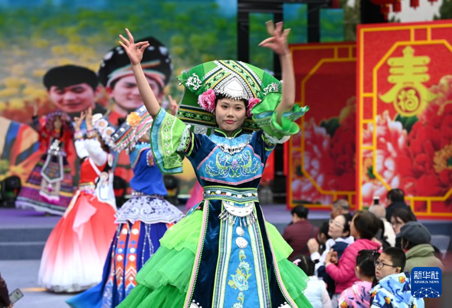 2月17日,福建省艺术馆和福州连江县文化馆联合演出民族服饰秀《石榴籽一家亲》。新华社记者 林善传 摄