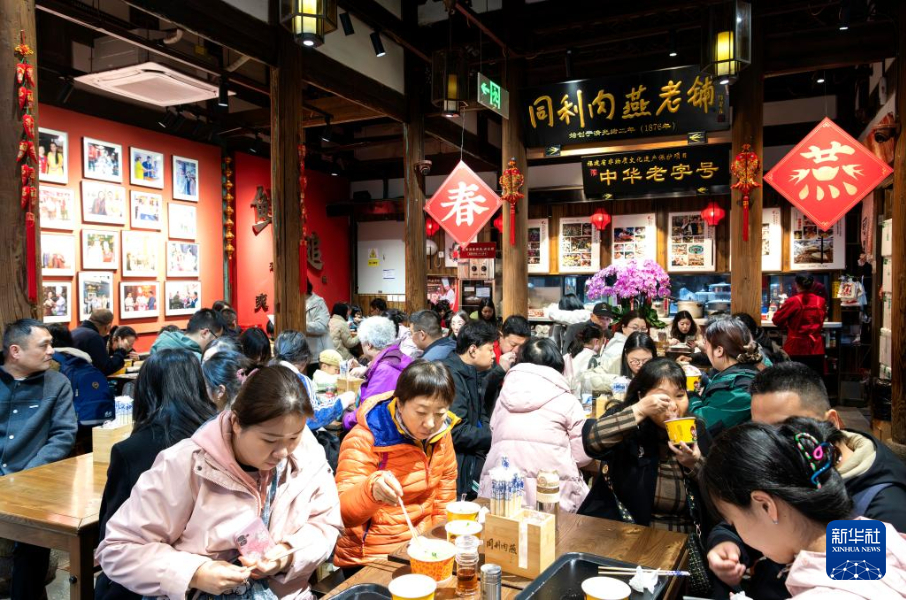 2月17日,游客在福州市三坊七巷同利肉燕老铺里品尝福州传统名小吃肉燕。新华社记者 魏培全 摄
