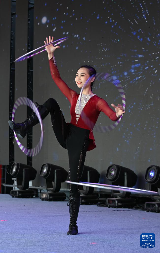 2月22日,福建省杂技团演员在“周末戏相逢”福建优质文化文艺资源直达基层公益性演出活动上表演杂技。新华社记者 林善传 摄
