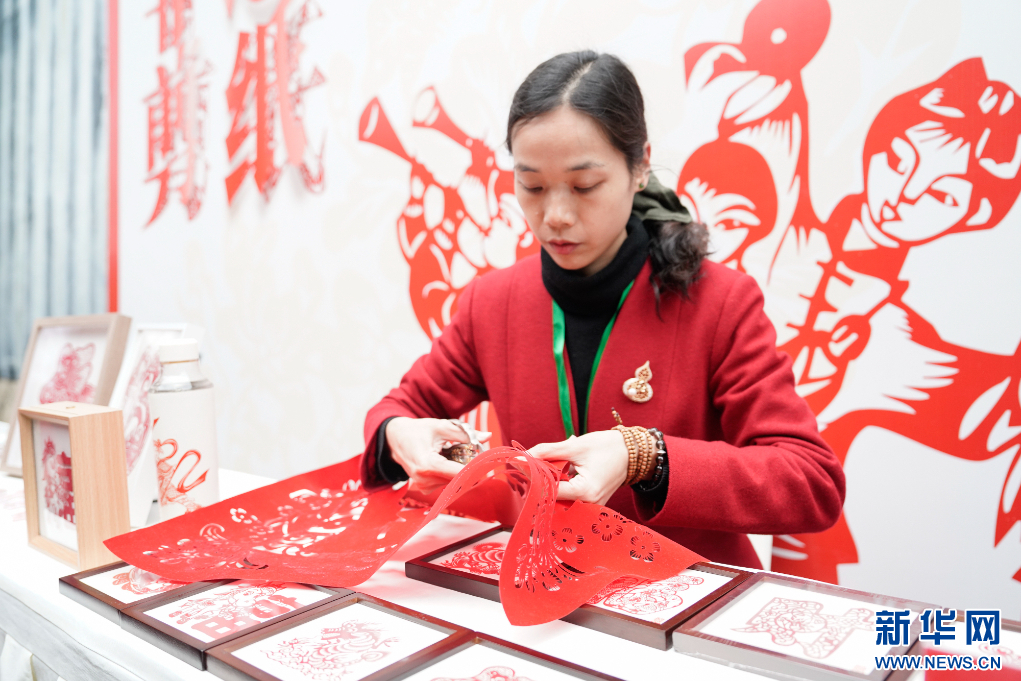 这是现场展示的浦城剪纸技艺。新华网 蒋巧玲 摄