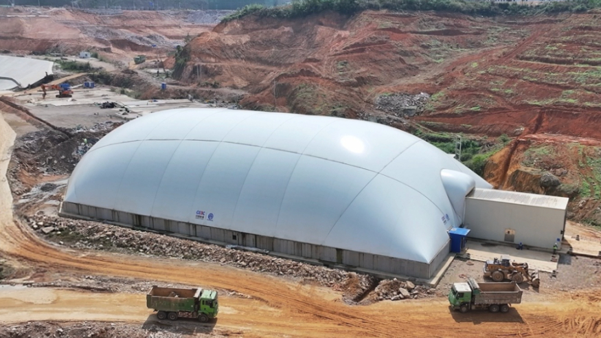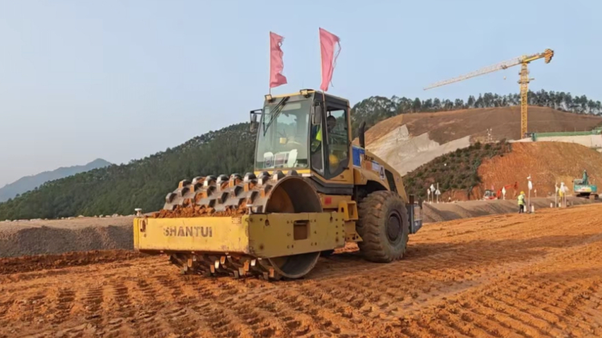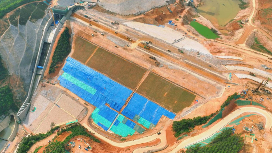 云霄抽水蓄能电站下水库大坝填筑区。新华网发(中国能建葛洲坝集团供图)