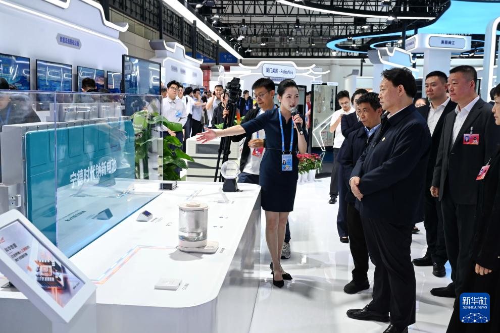 4月29日,观众在第九届数字中国建设峰会现场体验区参观。新华社记者 高咏薇 摄